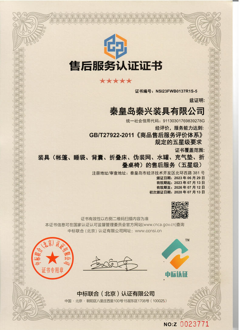 • 售后服務(wù)認(rèn)證證書(shū)
