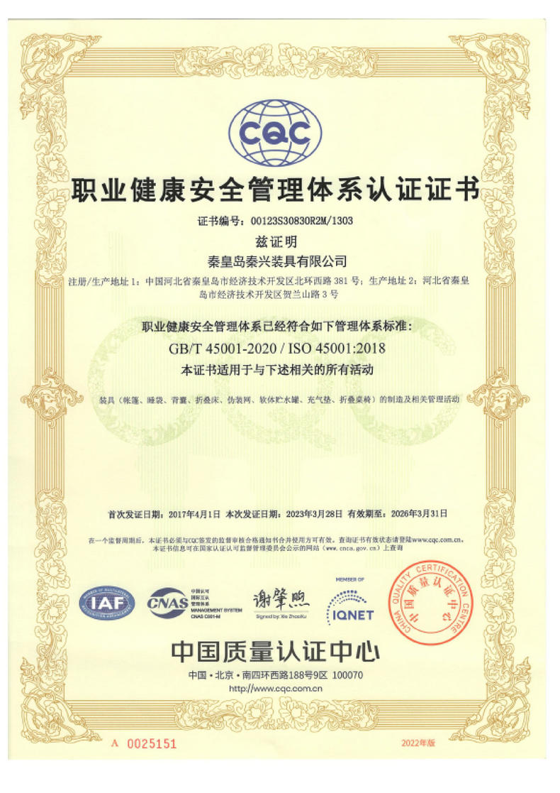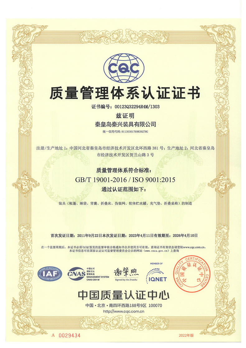 秦皇島秦興裝具有限公司有限公司源于我國(guó)第3524工廠,創(chuàng)建于2005年,占地面積30畝,是一家致力于研究,發(fā)展,制造和銷售為一體的綜合性裝具及紡織服裝加工生產(chǎn)企業(yè),我們的主要產(chǎn)品有單、棉帳篷,民用帳篷,旅游帳篷集各種機(jī)工產(chǎn)品等。